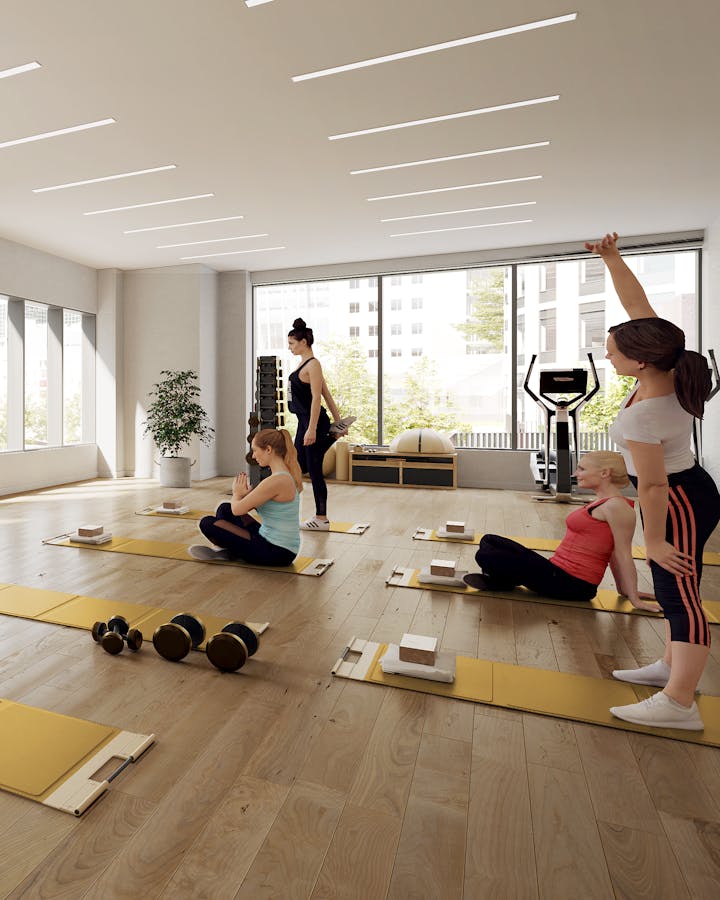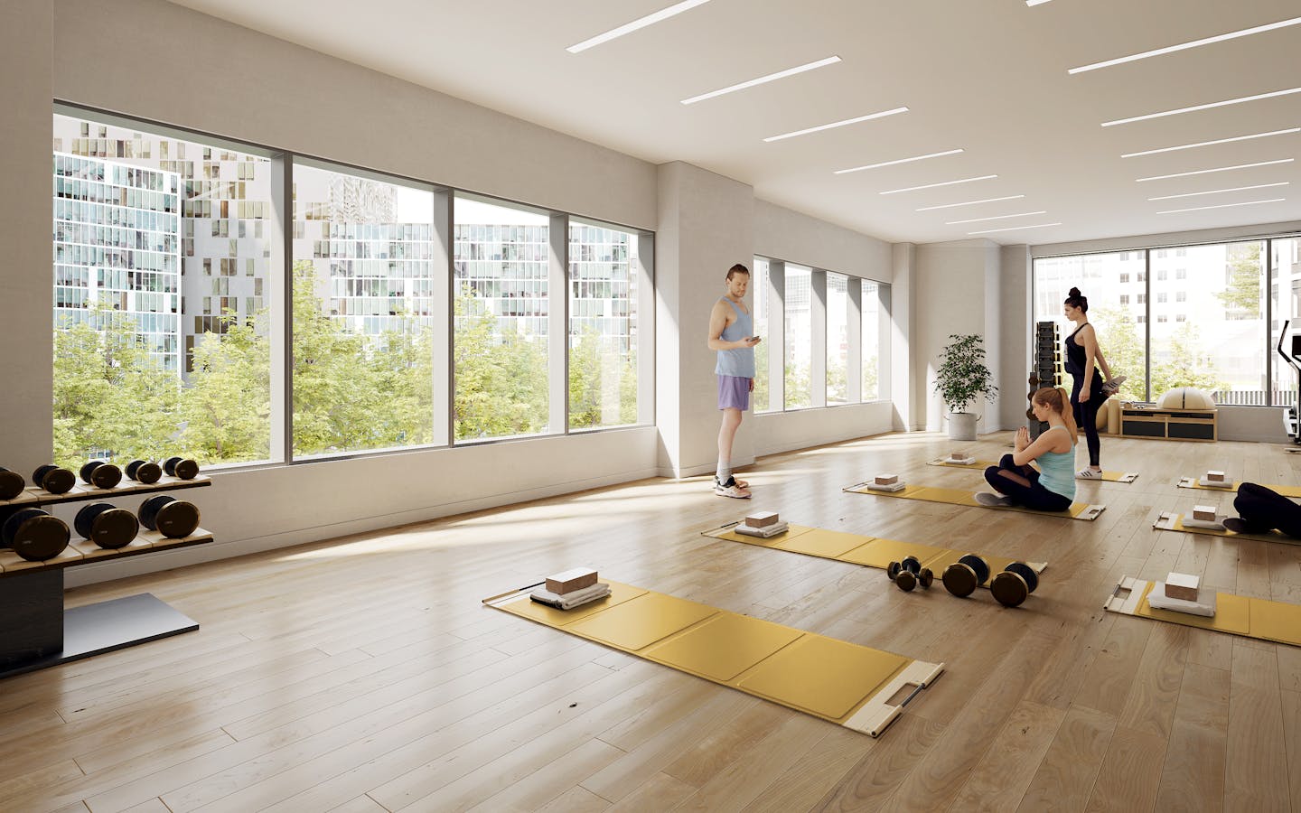 Lightwell met à disposition des utilisateurs un espace Wellness avec machines de musculation et cours collectifs, qui leur permet de bouger, se challenger ou se détendre dès qu’ils le souhaitent.