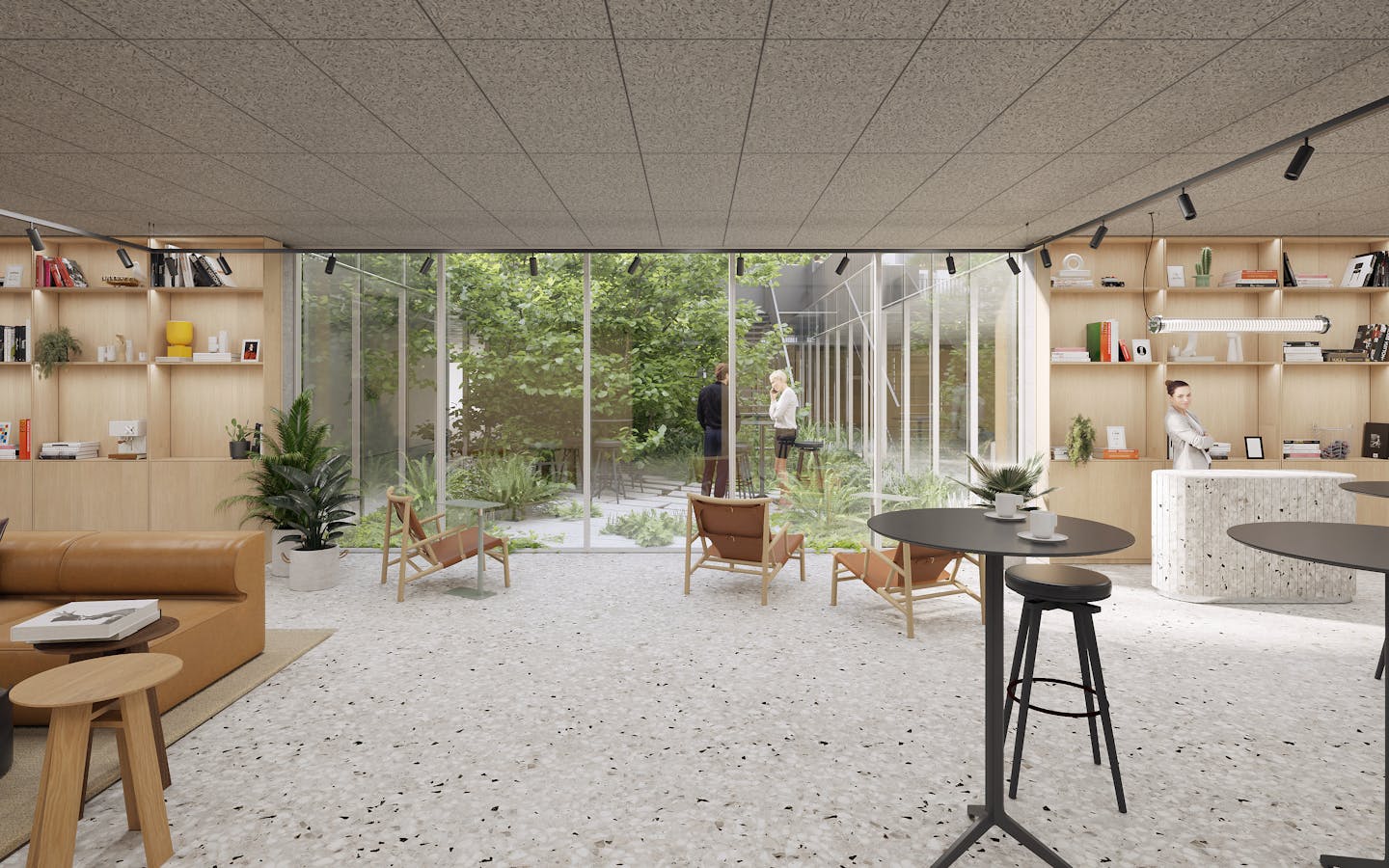 L’accueil de Lightwell se dessine dans le prolongement du parvis.