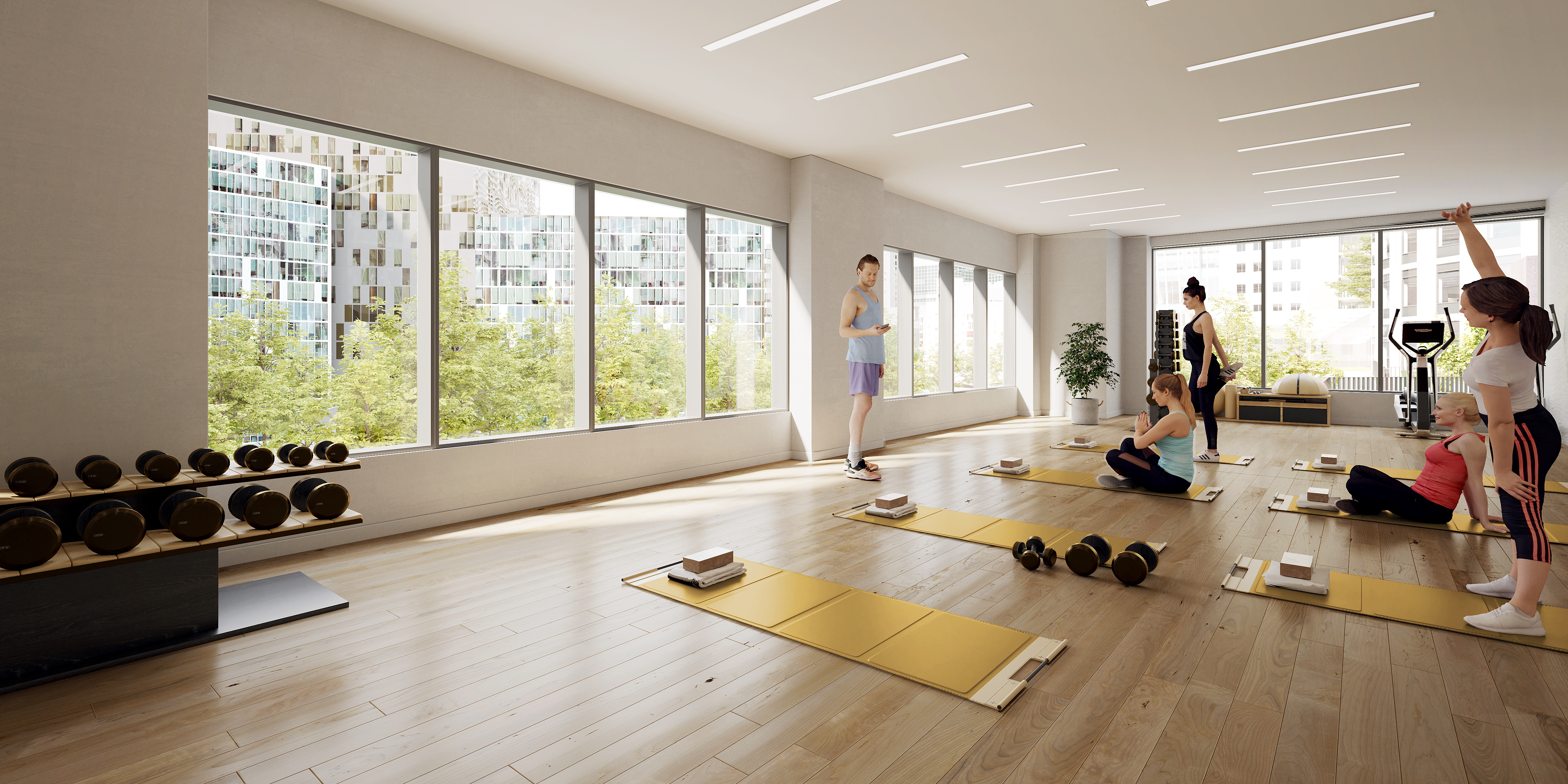 Lightwell met à disposition des utilisateurs un espace Wellness avec machines de musculation et cours collectifs, qui leur permet de bouger, se challenger ou se détendre dès qu’ils le souhaitent.