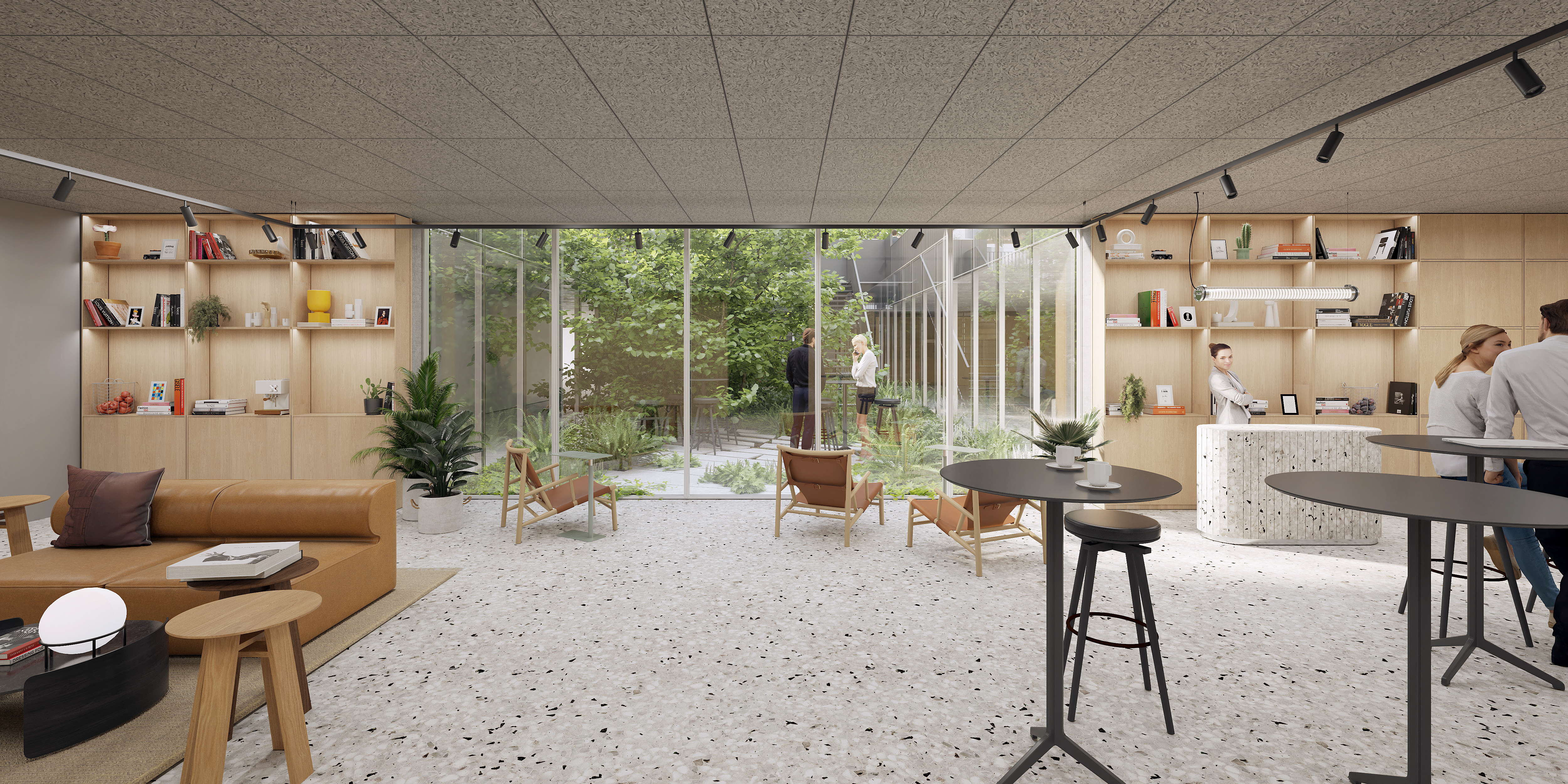 L’accueil de Lightwell se dessine dans le prolongement du parvis.