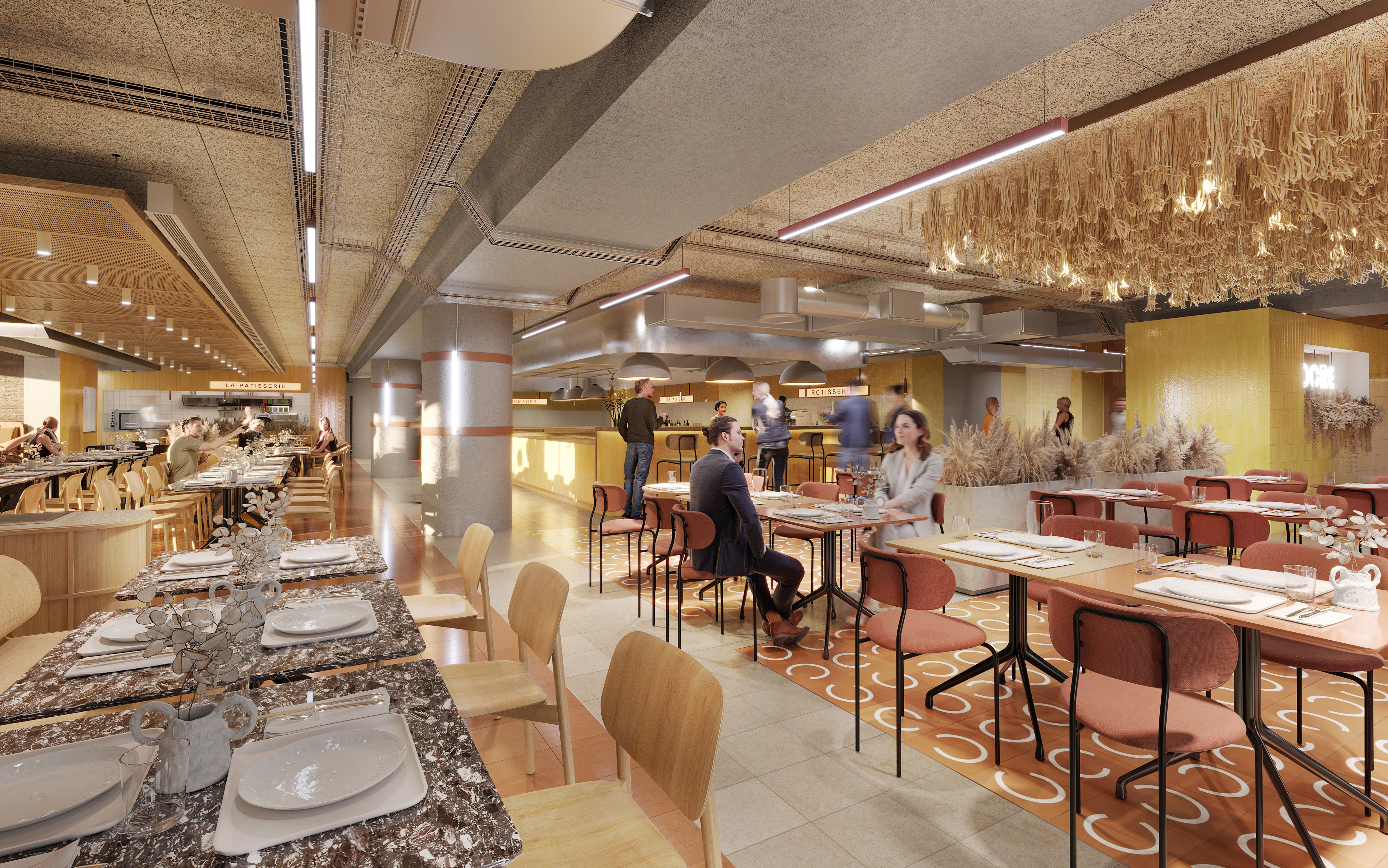 Avec sa poissonnerie, sa boucherie, sa trattoria, son épicerie, sa pâtisserie, son offre healthy et vegan, le restaurant de Lightwell ressemble à un marché.