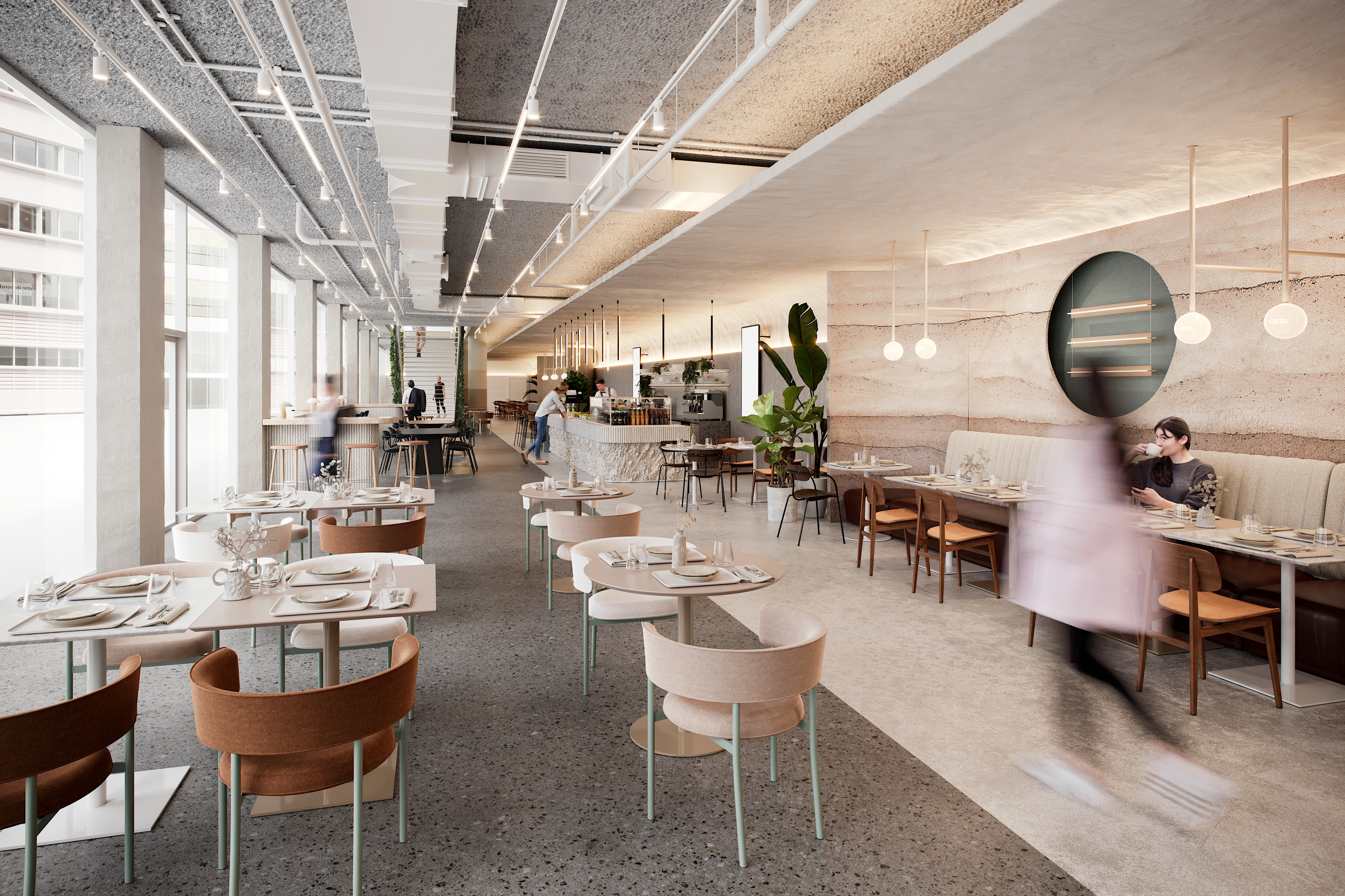 Ouverts, vibrants et chaleureux, ils créent une continuité naturelle entre l’Esplanade et les services de l’immeuble.